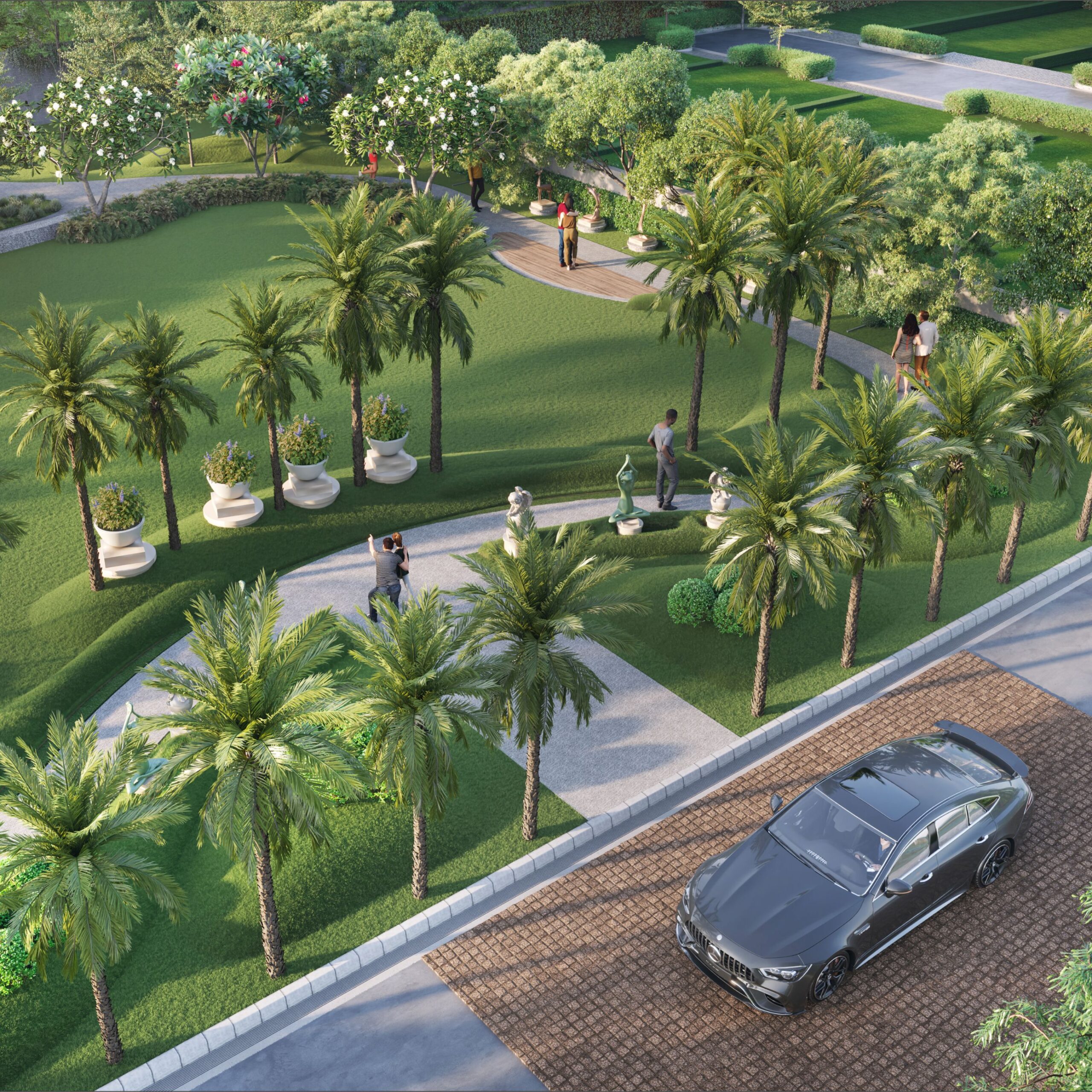Grand entrance gates, tree-lined boulevards, street lighting, and beautifully maintained common areas enhance both aesthetics and functionality.